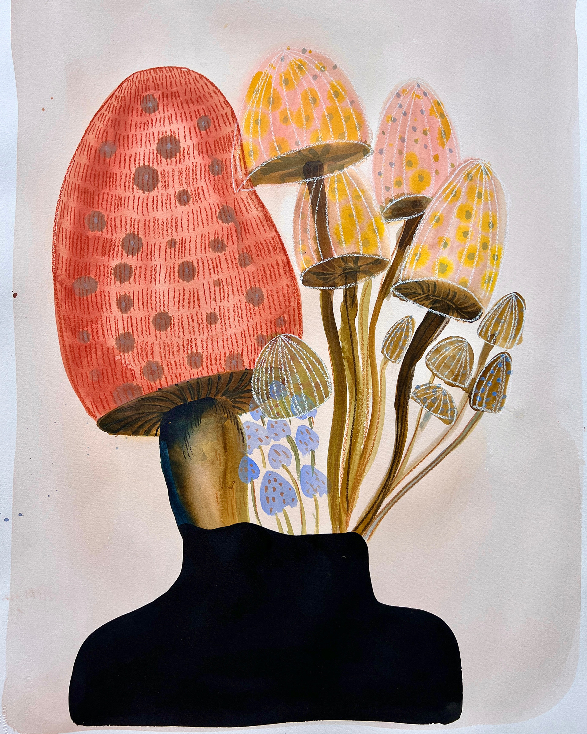 Mixed-media on watercolor paper.