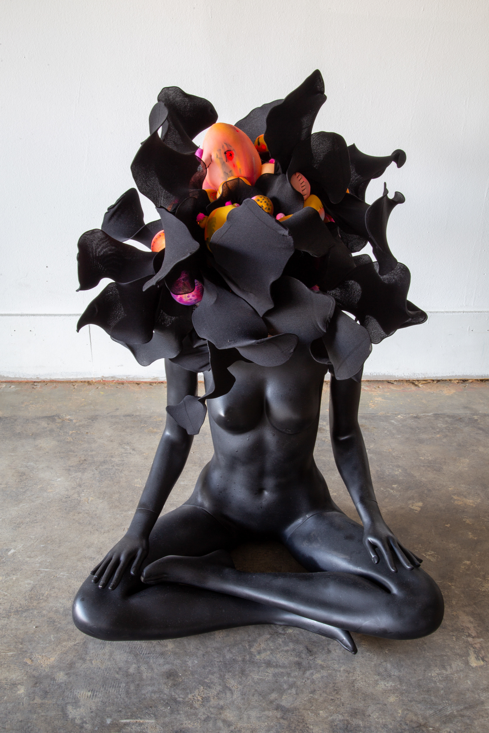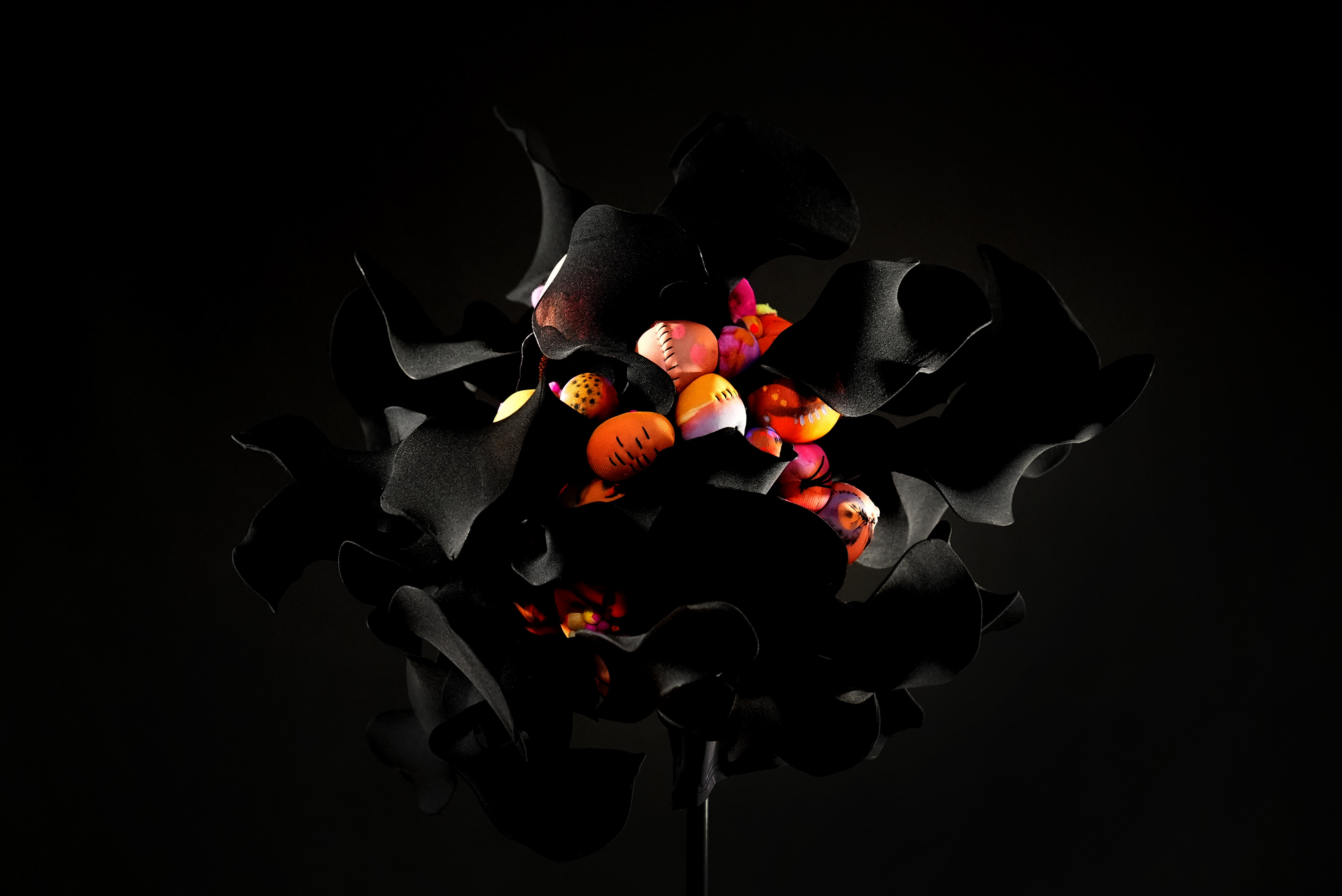 This sculptural mask was born from the need to translate my works on paper, the layering of color, the flow of ink, the translucency and textures to a wearable piece of art. I was interested in the use shapes that welcome the light in a different way, allowing myself to ponder my work in a multidimensional way.