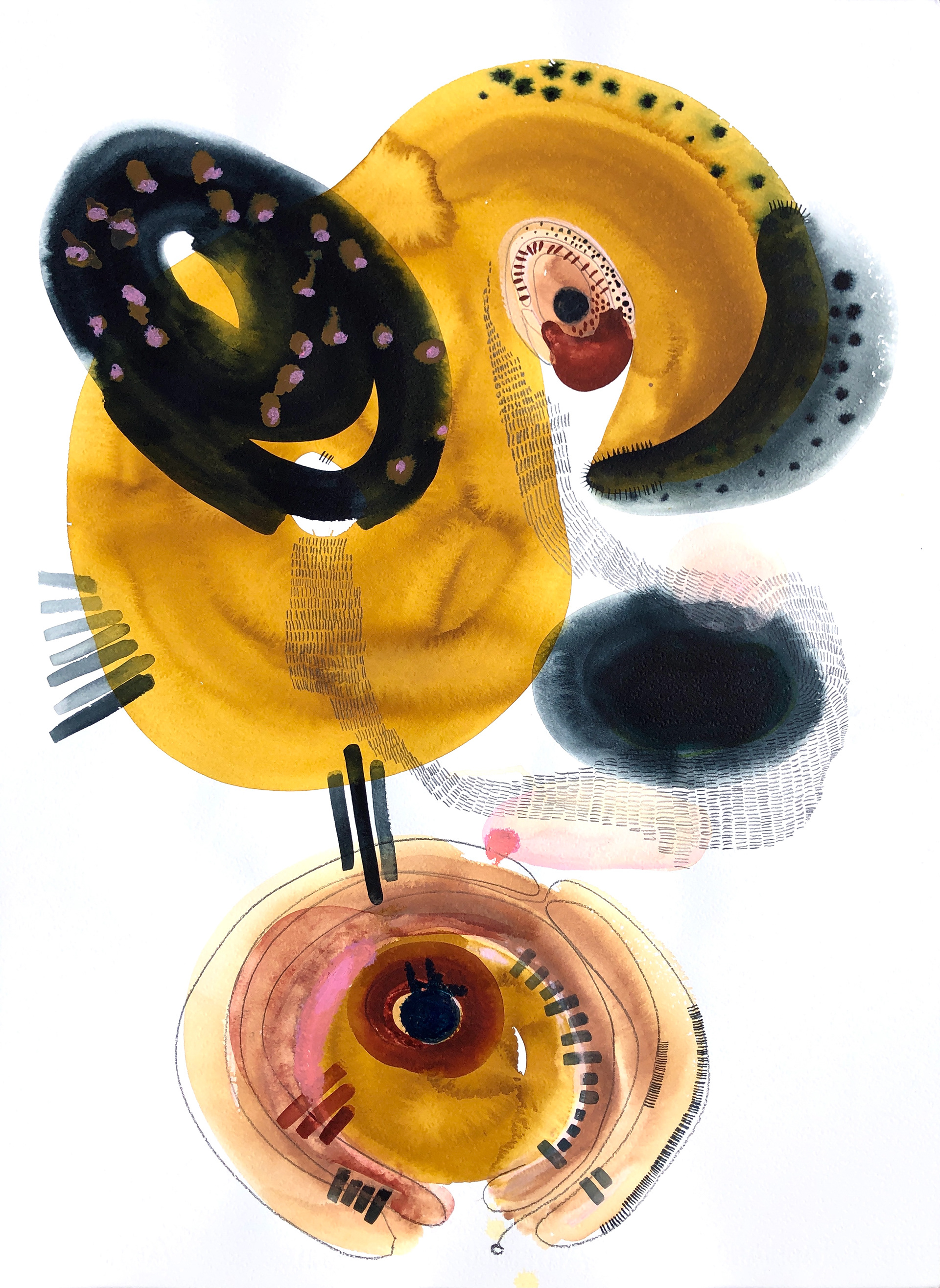 Watercolor, graphite, ink and pastels on 300 lb Fabriano paper.